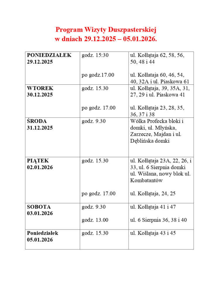 w Kancelarii Parafialnej lub u ks. Proboszcza Krzysztofa Krakowiaka